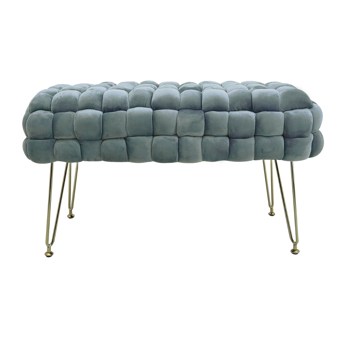 Cassapanca fissa, non contenitore, imbottita in velluto, unica ed originale, con piedi in metallo oro regolabile, un elegante seduta aggiuntiva per il tuo soggiorno o camera da letto.