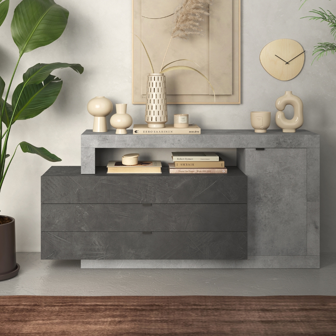 Madia contenitore 1 anta e 3 cassetti Cemento e Piombo – Liberty