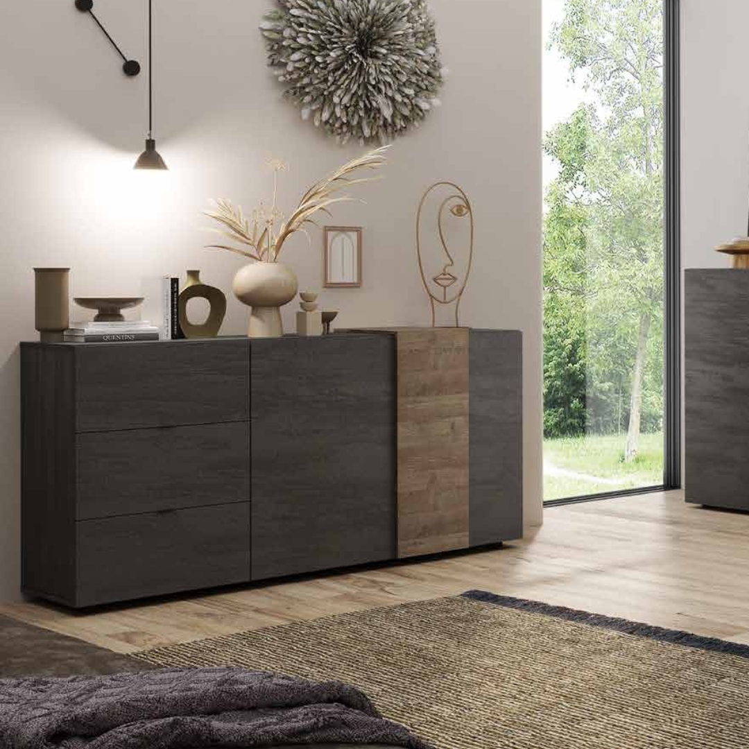 Madia contenitore 2 ante e 3 cassetti Titanio e rovere Mercure – Viktra