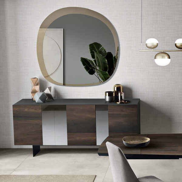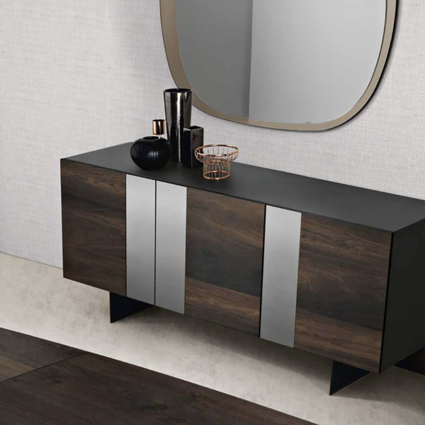 - Design Elegante: La combinazione di rovere impiallacciato con inserti specchio e la scocca in nobilitato antracite crea un pezzo distintivo e chic.
