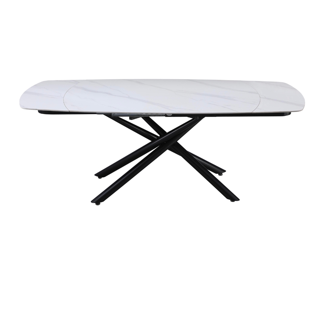 Tavolo allungabile in ceramica cm 140/200 x 90 marmo bianco lucido e gambe nere- Ryder