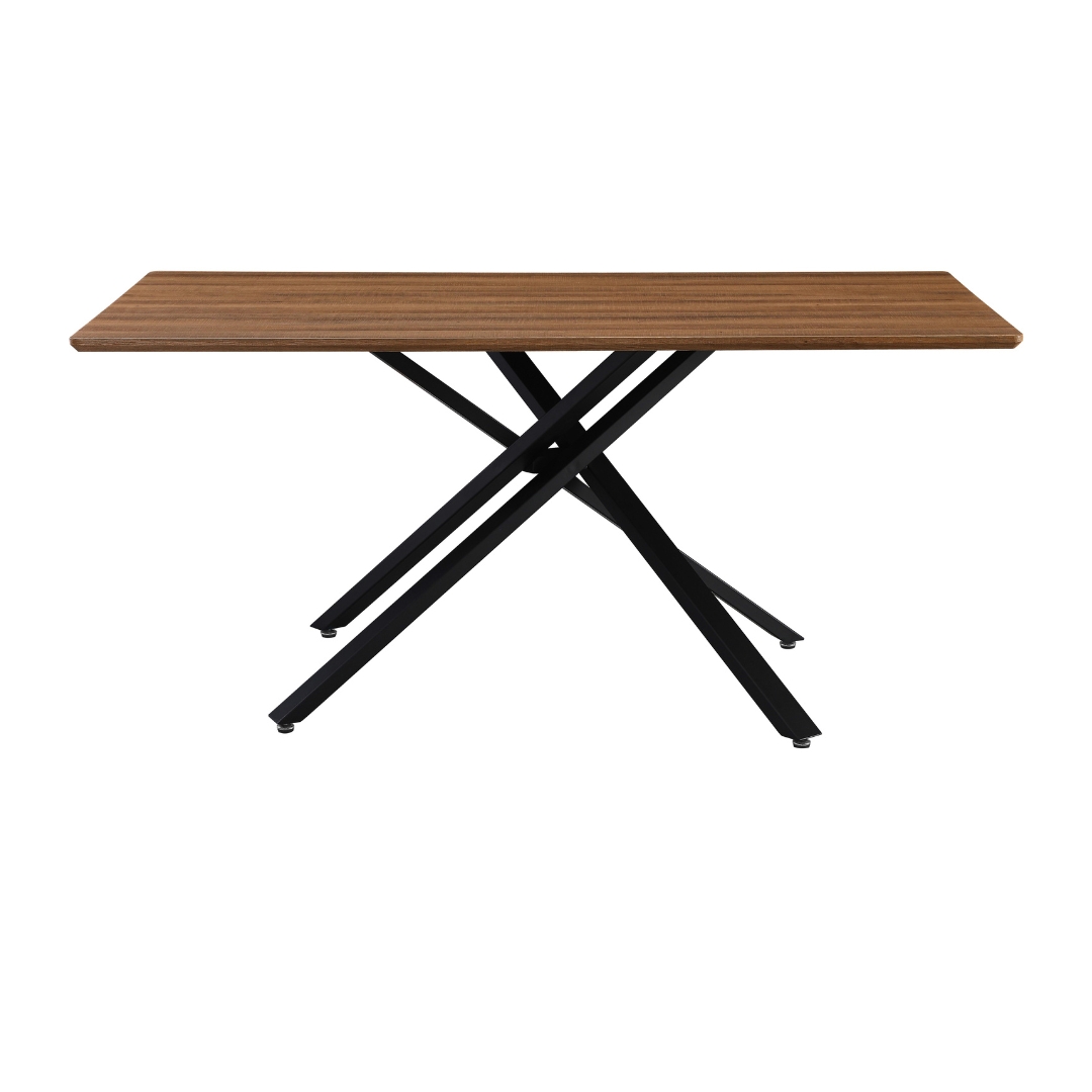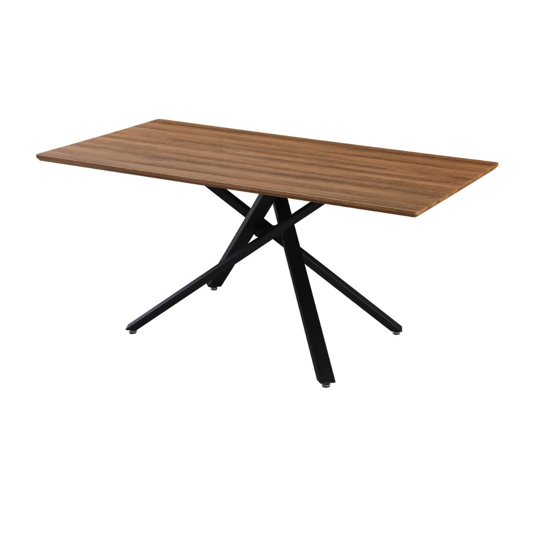 Tavolo rettangolare Jasper con piano in MDF color legno noce (spessore 25 mm) e gambe in metallo nero opaco.