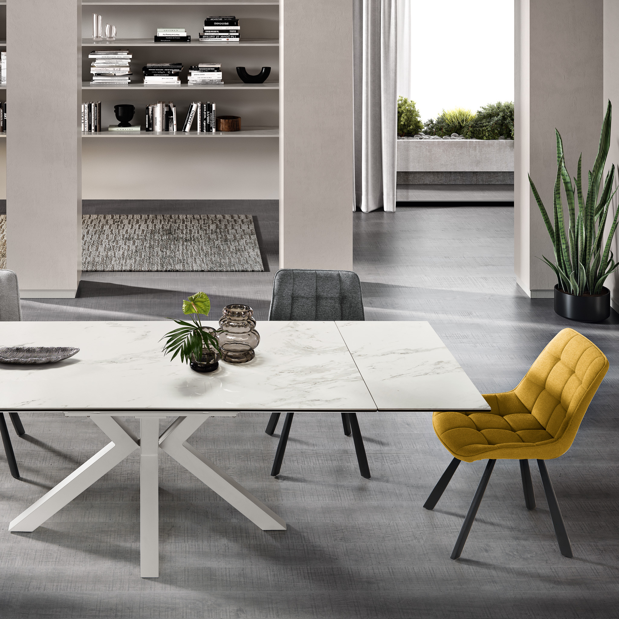 Il tavolo JACKY allungabile con base in metallo verniciato di CAPODARTE è una soluzione versatile ed elegante per chi cerca un tavolo capace di adattarsi a diverse esigenze di spazio. Con la sua costruzione robusta e il design sofisticato, disponibile in effetto marmo o effetto legno, il tavolo JACKY è una scelta eccellente per qualsiasi ambiente, garantendo funzionalità e stile.