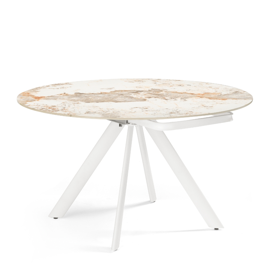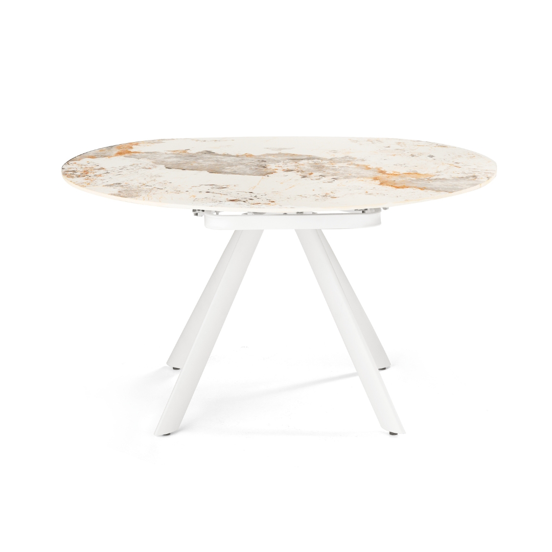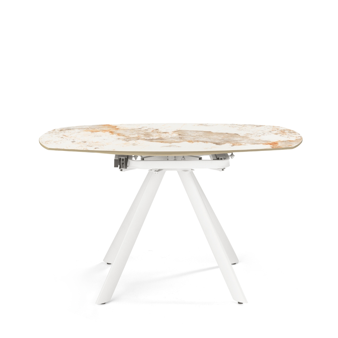 Tavolo ovale trasformabile in rotondo, in ceramica Marmo pandora lucido cm 87/135 x 135 – Tarabas
