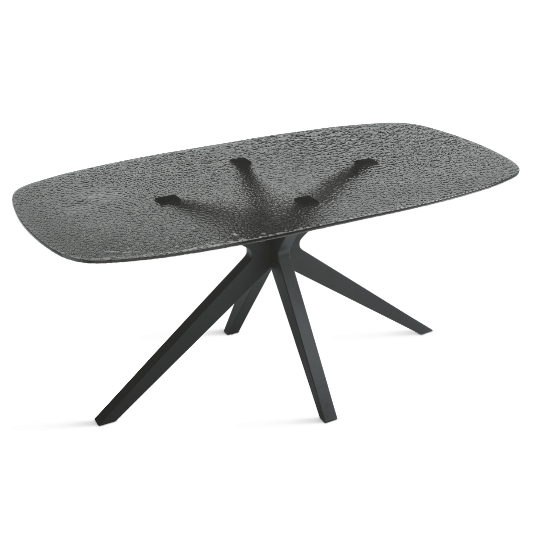 Tavolo rettangolare fisso in vetro martellato fumè cm 180 x 100 – Bima
