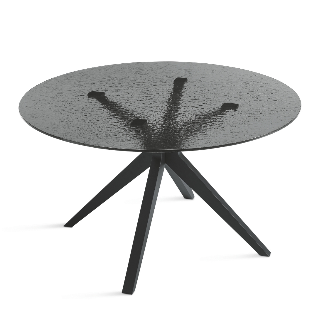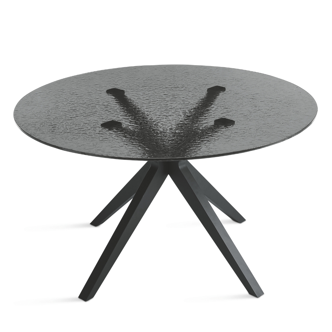 Tavolo rotondo fisso in vetro martellato fumè, diametro cm 140 – Bima