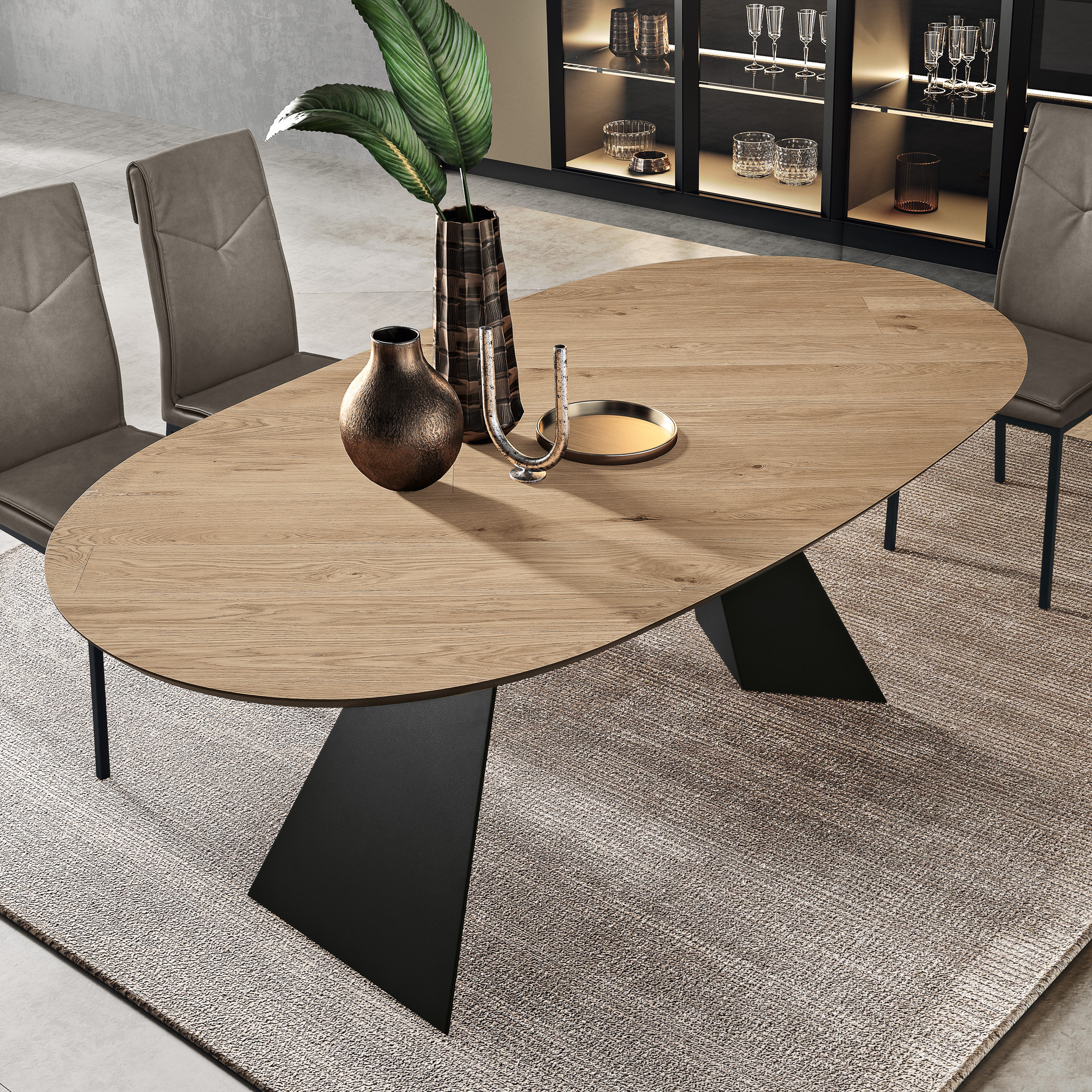 Elevate il vostro spazio abitativo con il Tavolo Tokyo di Capodarte, un esempio di eleganza moderna e funzionalità. Questo tavolo, con la sua base in metallo verniciato e il piano ovale in rovere impiallacciato, disponibile nelle finiture rovere crudo, rovere termico ed eucalipto, aggiunge raffinatezza a qualsiasi ambiente.