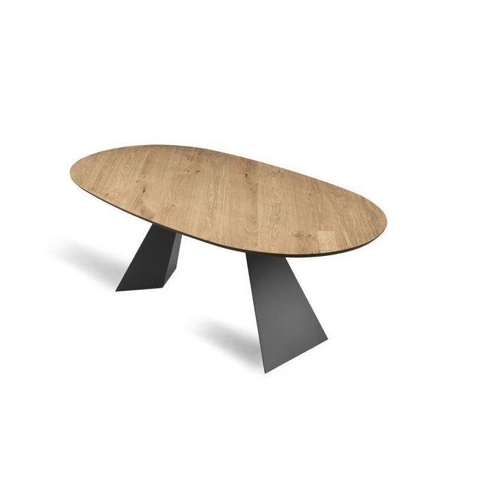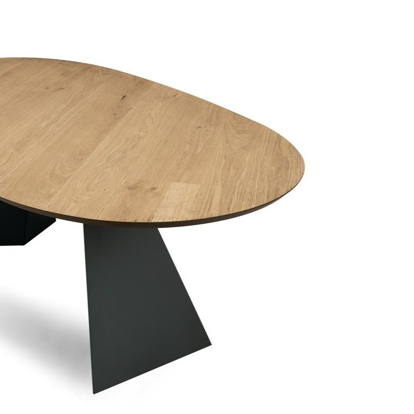 Il Tavolo Tokyo si distingue per la sua base robusta in metallo verniciato, che garantisce stabilità e durata, mentre il piano in rovere impiallacciato dona un aspetto naturale e sofisticato, perfetto per ambienti moderni e tradizionali.