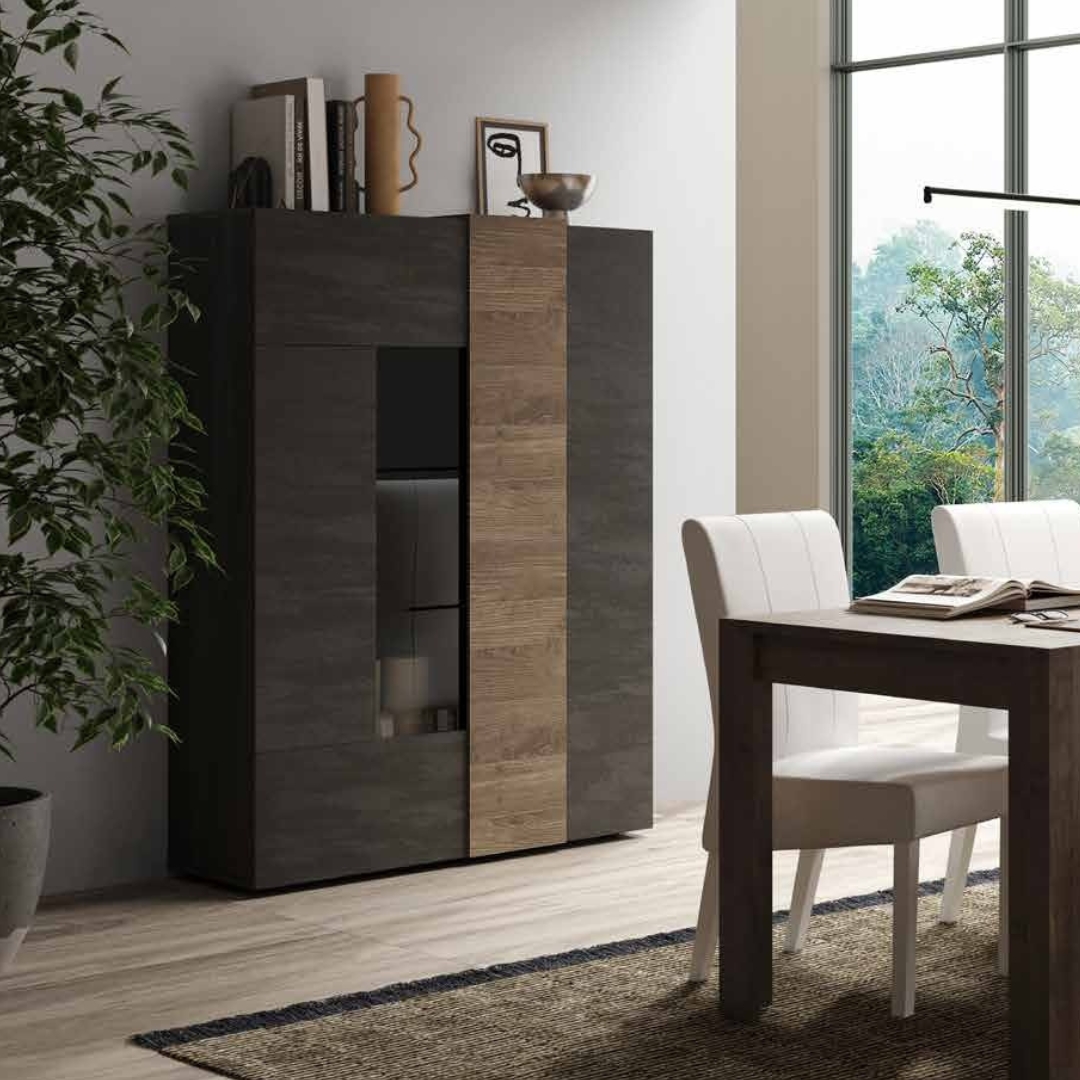 Vetrina contenitore 2 ante Titanio e rovere Mercure – Viktra