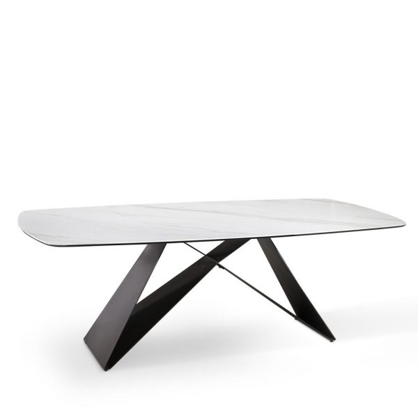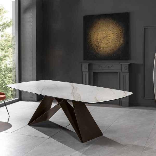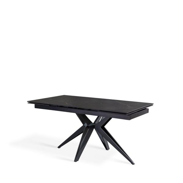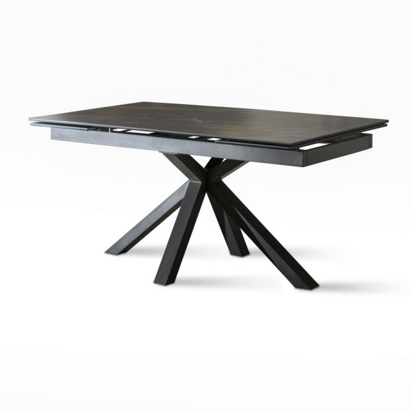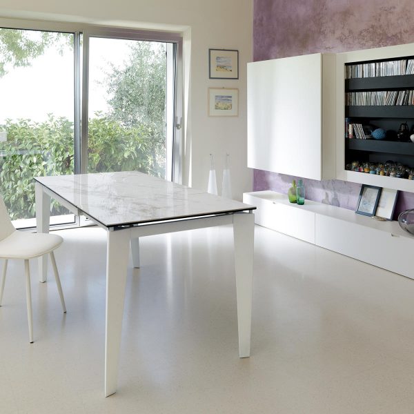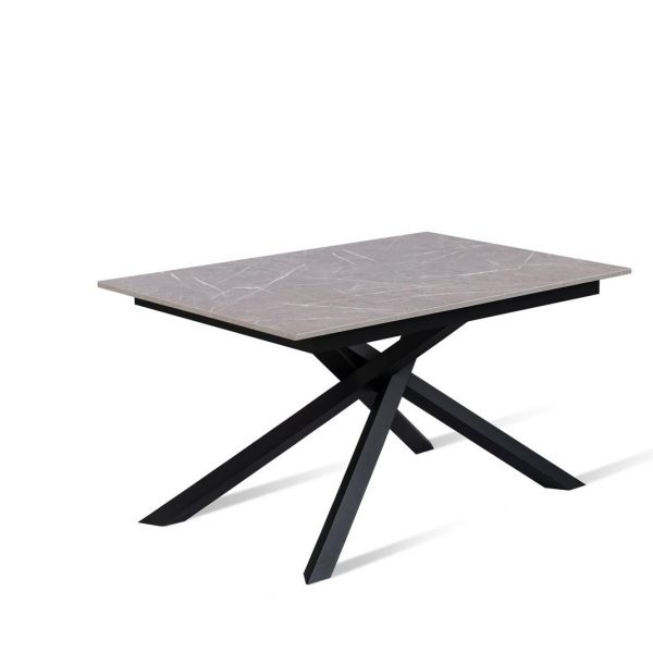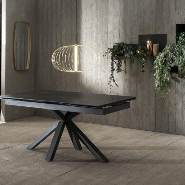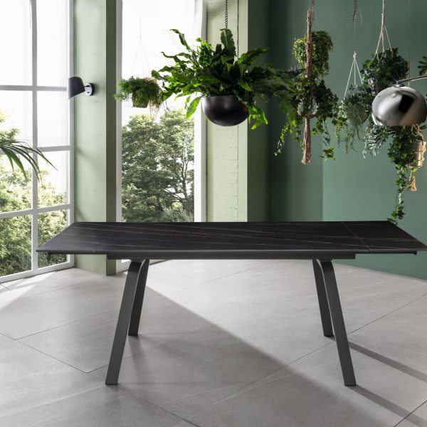 Tavolo Nestore allungabile con base in metallo verniciato e piano in grès porcellanato effetto marmo...