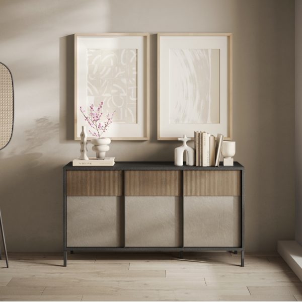 Madia contenitore 3 ante Lava e Argilla con inserto rovere mercure – Kenia